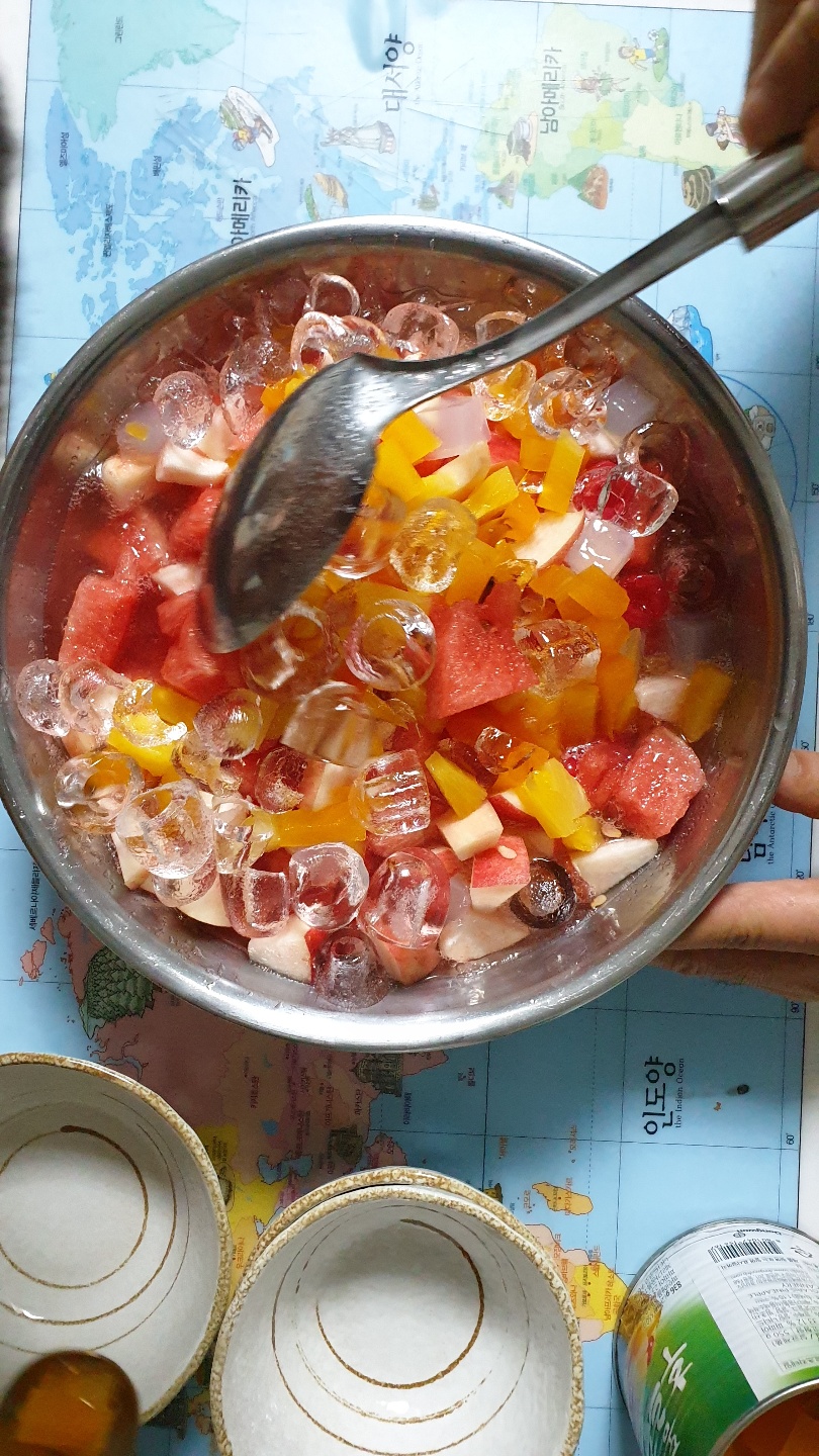 가장 덥다는 중복입니다. 아이들과 함께 시원하게 먹을 수 있는 수박화채 만들기 시간을 가졌습니다. 같이 모여서 하면 좋았겠지만 각자 집에서 아이들과 함께 만들었습니다. 아이들은 사이다만 넣은것이 더 맛나다고 하네요. 어른들은 우유를 약간 넣은 것에 한표를 주었습니다. 더운 여름 모두 건강하게 나길 기원합니다.